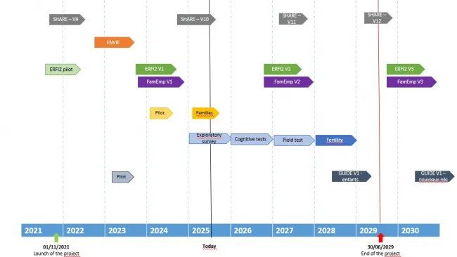 Each survey is produced according to its own timetable, within a framework decided at European level as part of ERFI2, GUIDE and SHARE.